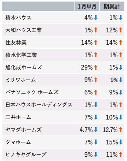 1月のハウスメーカー受注速報を見ると