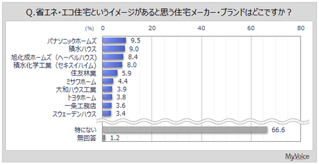 「省エネ・エコ住宅のイメージがある住宅メーカーはどこですか?」